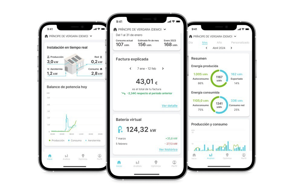 Además, dispone de una API que integra datos de consumo y generación procedentes de contadores inteligentes, paneles solares y dispositivos conectados. Todo ello se complementa con aplicaciones de marca blanca adaptables a la identidad visual de cada compañía y módulos personalizables que pueden integrarse fácilmente en sistemas existentes.