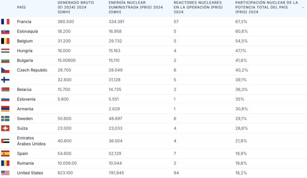 Otros países europeos también muestran alta dependencia de la nuclear: