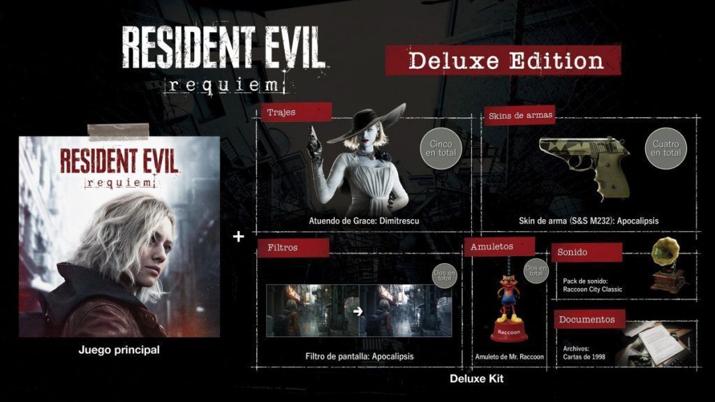 Los jugadores podrán adquirir Resident Evil Requiem en edición estándar o Deluxe. La edición Deluxe incluye: