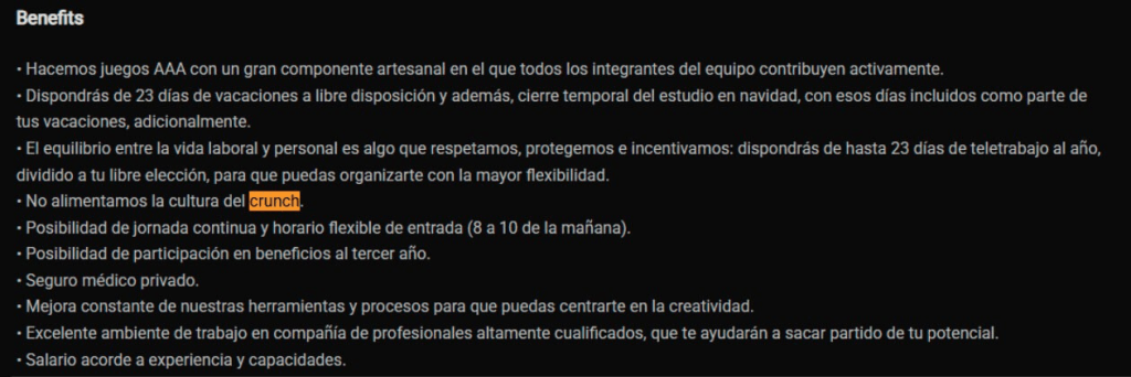 Mientras tanto, las ofertas de trabajo del estudio continuaban publicándose con mensajes que aseguraban que MercurySteam “no fomenta la cultura del crunch”.