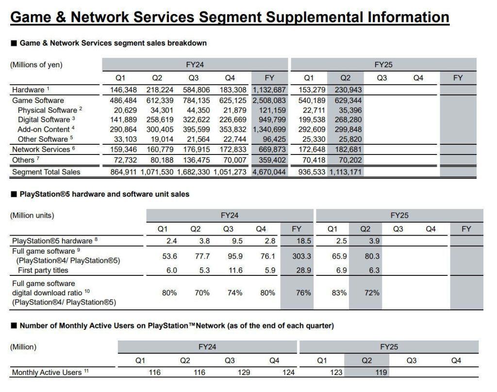 En el ámbito del software, Sony vendió 80,3 millones de juegos entre PS4 y PS5 durante el último trimestre fiscal, un incremento del 3,3 % respecto al mismo periodo del año pasado. Esta cifra no incluye los 3,3 millones de copias que Ghost of Yotei colocó en su primer mes, lo que refleja una sólida demanda de títulos first-party y third-party en las plataformas de PlayStation.